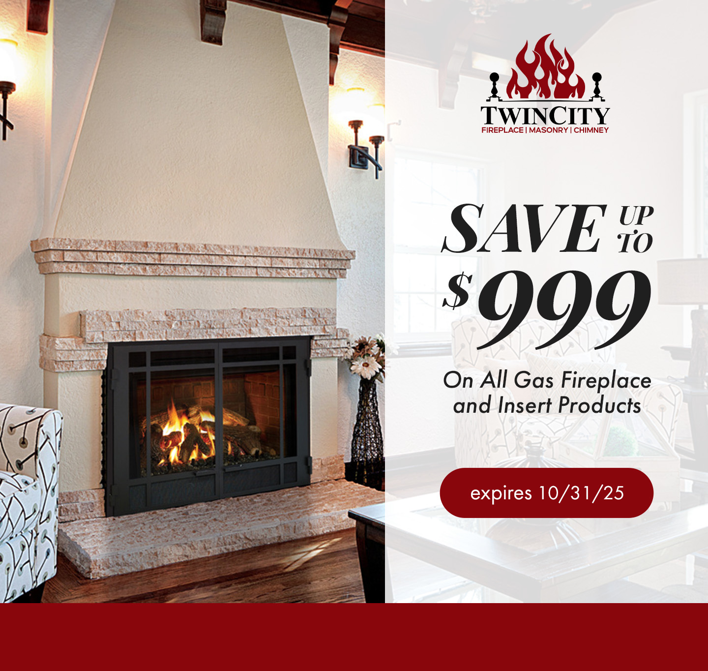 - Save up to $999 on all gas fireplace and insert products. Offer expires 10/31/2025.